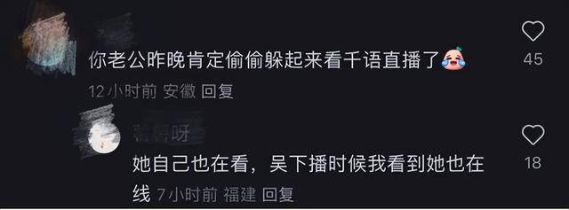但很多网民似乎不太在乎张馨月的感受,有的网民直接开脸贴大,直接给张馨月留言,你老公昨晚肯定在偷看吴千语的直播。